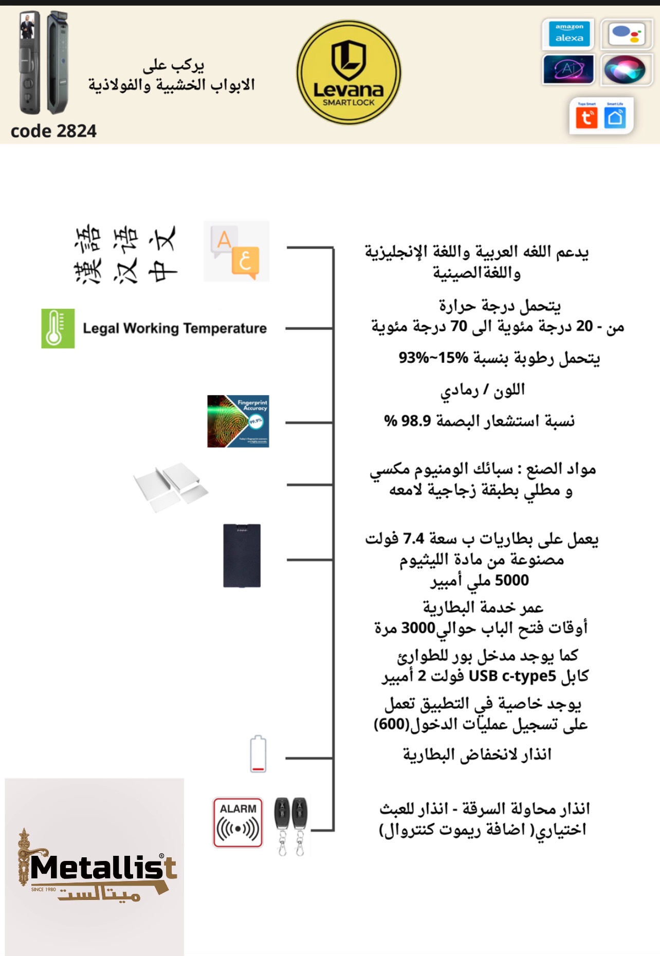 طرومبة باب سمارت – بصمة، باسورد، كارت وموبايل أبلكيشن | Metallist