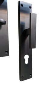 أكرة باب سوداء بوش طويل بلمسة فامية أنيقة – تصميم عصري يجمع بين الفخامة والعملية، مثالية لأبواب الغرف والديكور المودرن. الطقم مزود بخاصية الانكية للتثبيت وشامل جميع مسامير التثبيت السعر للطقم من الداخل والخارج مع مستلزمات التركيب مصنوع من الفولاز في زاما لضمان الصلابة والجودة بلد المنشأ الصين.