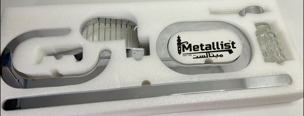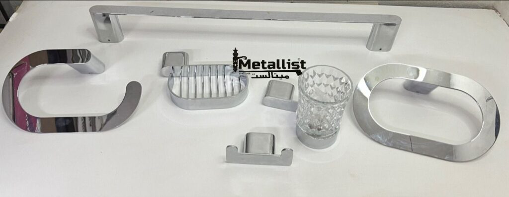 طقم اكسسوار حمام استالس مصنوع من الاستالس المعالج ضدد الصداء مكون من6 قطع -فواطة -شماعه -وراقة -حامل كوب لفرش الاسنان -صبانة سلك -فواطة صغيرة