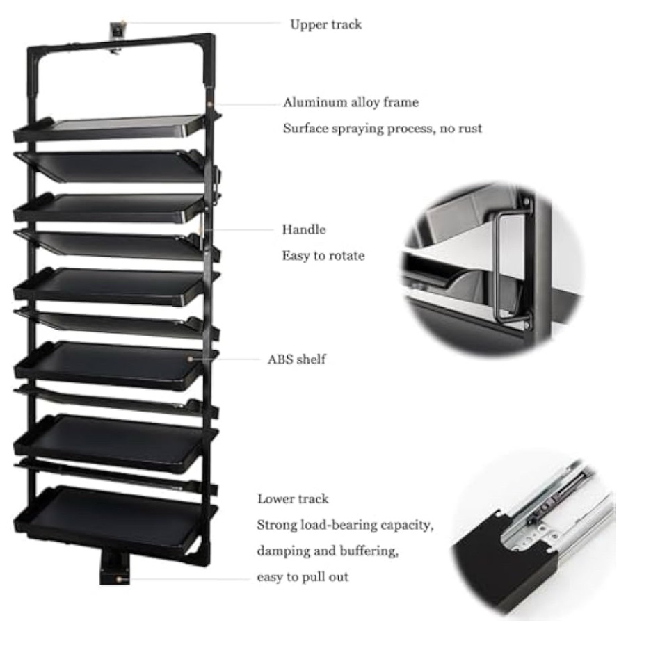 الماكينيزم مصنوع بخامة قوية تضمن ثبات وسهولة الاستخدام اليومي، مع إمكانية اختيار عدد الرفوف المناسب حسب عدد الأحذية والمساحة المتاحة.